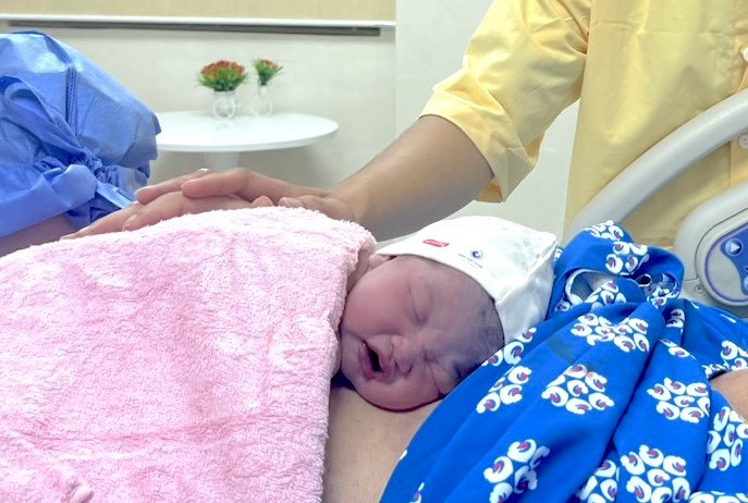 Bé trai N.C.H.V nặng 3,2kg, chào đời khỏe mạnh 12 phút sau đó. Nghe tiếng khóc của con trai và nụ cười trên gương mặt vợ, chồng chị An xúc động, thở phào nhẹ nhõm. “Đây là món quà ý nghĩa nhất rồi”, anh chia sẻ.