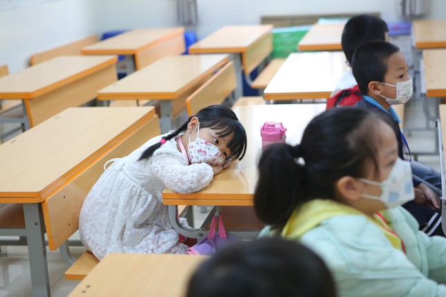 Sáng nay, tỷ lệ học sinh đến lớp học trực tiếp đạt khoảng hơn 90%, số còn lại là một số em đang mắc COVID-19 hoặc ở quên chưa kịp lên thành phố. Một số em học sinh lớp 1 bỡ ngỡ khi lần đầu đi học đã khóc mếu, đòi về, nhưng sau khi được giáo viên dỗ dành, các em ngừng khóc và hoà đồng cùng cả lớp. "Một vài em không chịu hoà đồng, nhút nhát, khóc không ngừng sẽ được nhà trường tạo điều kiện để phụ huynh ngồi cạnh", cô nói.