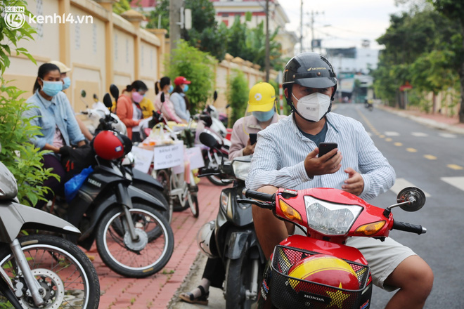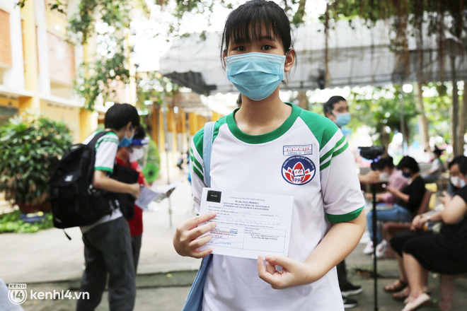Đứng đợi một góc trước cổng trường, cô Nguyễn Thị Phượng (56 tuổi) vui mừng khi Hồng Trang (17 tuổi), con gái cô Phượng đã được chích vaccine. "Nghe chích vaccine là mừng rồi, cô không lo lắng gì hết, nhà cô còn mỗi bé Trang chưa chích thôi nên cô cũng động viên con đi chích", cô Phượng chia sẻ.