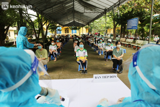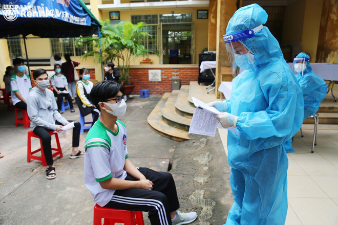 Tại bàn tiêm, các nhân viên y tế một lần nữa động viên tâm lý, cũng như hướng dẫn các bạn trẻ trước khi thực hiện tiêm. Sau khi tiến hành tiêm xong, tất cả các bạn học sinh sẽ đến khu vực theo dõi sau tiêm để ngồi chờ ít nhất 30 phút để theo dõi, xử lý triệu chứng (nếu có). Xe cấp cứu, giường bệnh, đội ngũ y tế cũng được bố trí chỉn chu.