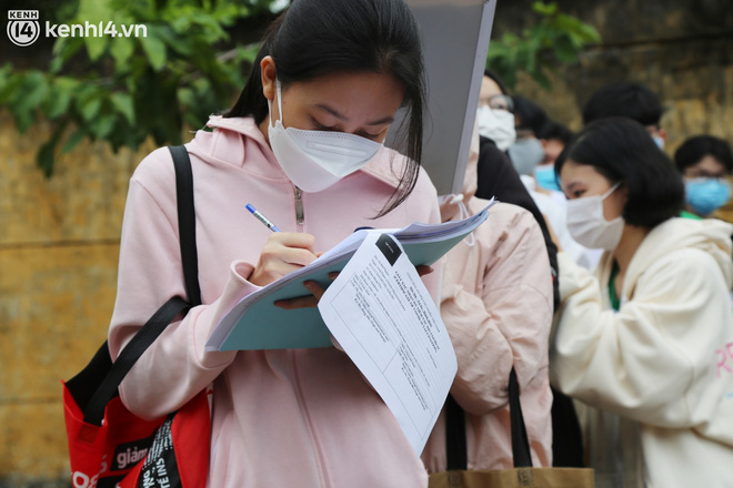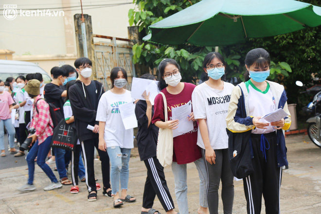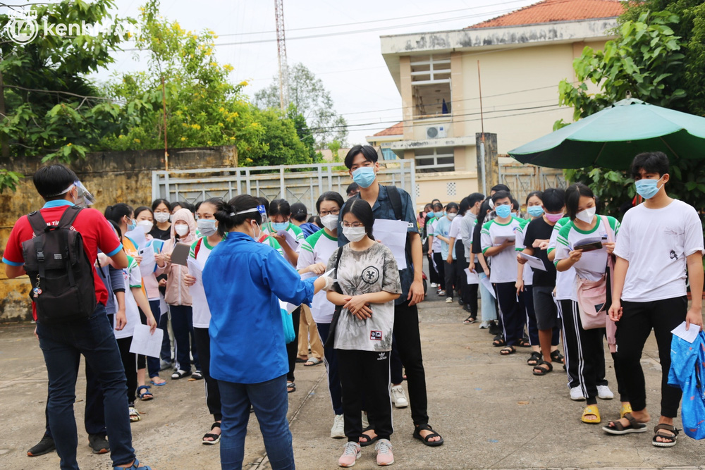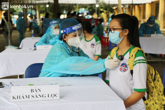 Sau khi được kiểm tra đầy đủ giấy tờ, phiếu đăng ký khám sàng lọc, đồng ý từ phía gia đình, các bạn học sinh lớp 12 xếp hàng ngay ngắn, di chuyển vào bên trong trường để làm các thủ tục trước khi tiêm. Mặc dù đây là lần đầu tiên triển khai việc chích vaccine cho trẻ em từ 12 - 17 tuổi nhưng hầu hết các bạn có tâm lý thoải mái, tự tin.