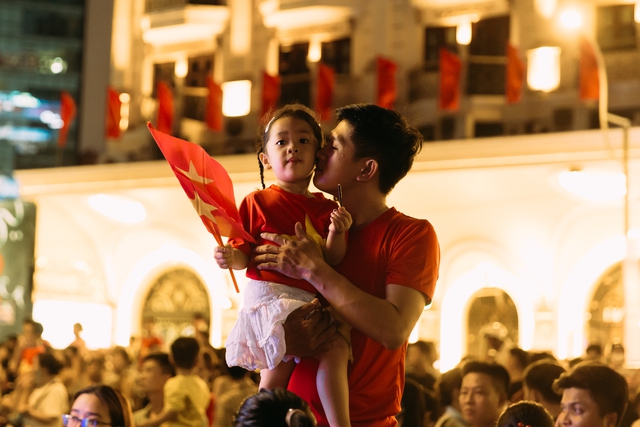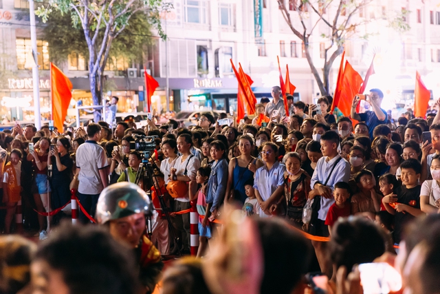 Để đảm bảo an toàn và tạo điều kiện cho người dân theo dõi, lực lượng chức năng đã phân luồng giao thông trên đường Tôn Đức Thắng từ sớm. Nhiều người đã tranh thủ ghi lại khoảnh khắc đáng nhớ.