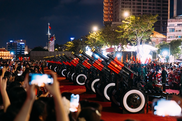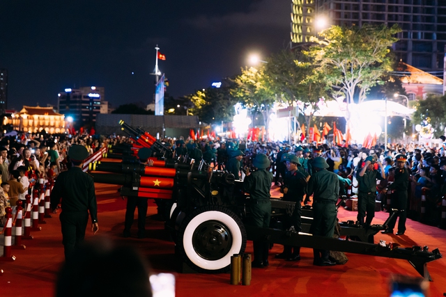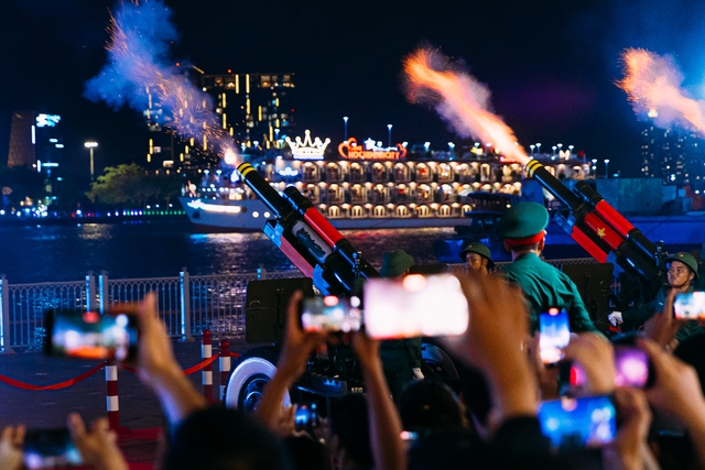21 khẩu đại bác đồng loạt bắn những loạt pháo rền vang, thu hút sự chú ý của hàng trăm người dân và du khách.