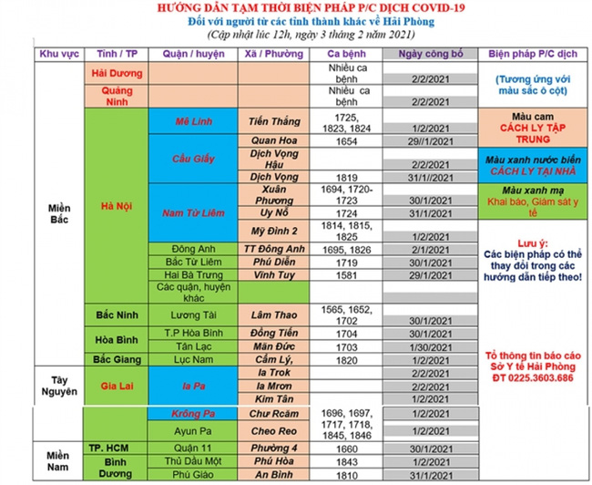 Tương tự, người từ Hà Nội khi về Quảng Ninh, Hải Dương (không vào các vùng dịch) sau khi ăn Tết xong vẫn quay về Hà Nội mà không phải cách ly tế. Tuy nhiên, cần lưu ý thực hiện nghiêm các biện pháp phòng chống dịch như theo dõi sức khỏe, khai báo y tế.