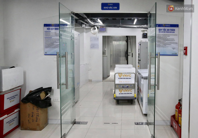 7h55, vaccine được vận chuyển từ xe chuyên dụng vào bên trong Khoa Khám bệnh theo yêu cầu và tiêm chủng vaccine, Bệnh viện Bệnh Nhiệt đới Trung ương, chuẩn bị tiêm cho nhân viên y tế đầu tiên.