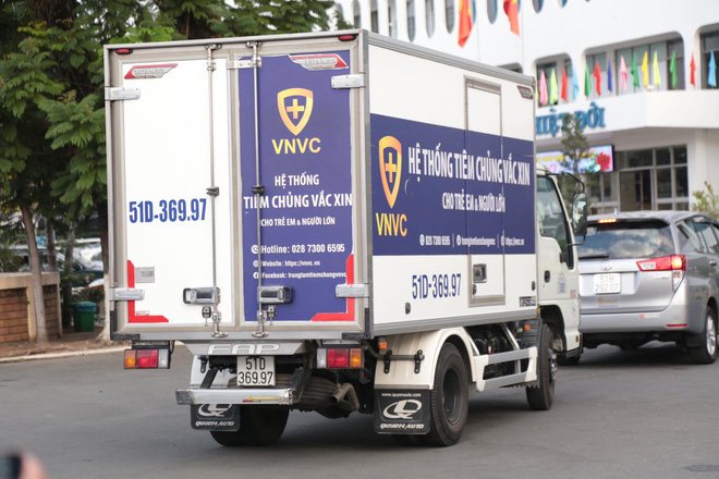 Tại Hà Nội: Từ 6h sáng, xe chuyên dụng chở vaccine xuất phát từ kho của Công ty Cổ phần Vaccine Việt Nam (VNVC) đến Bệnh viện Bệnh Nhiệt đới Trung ương (Đông Anh).