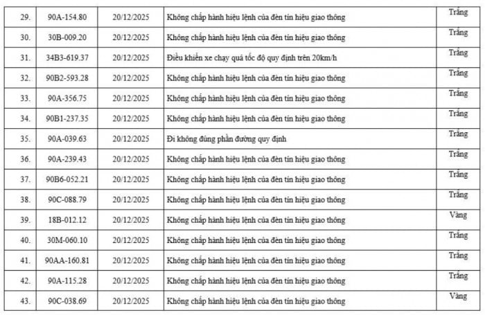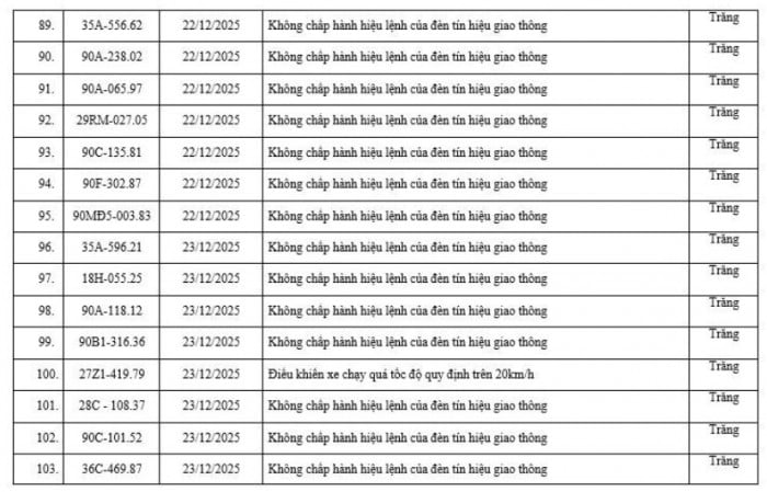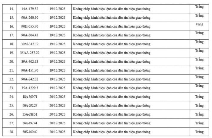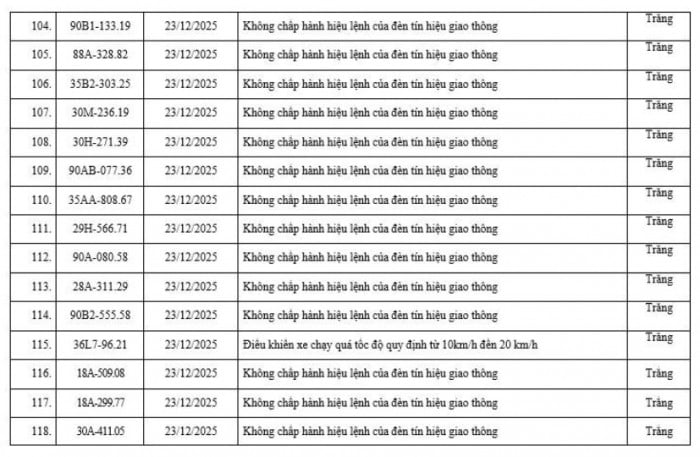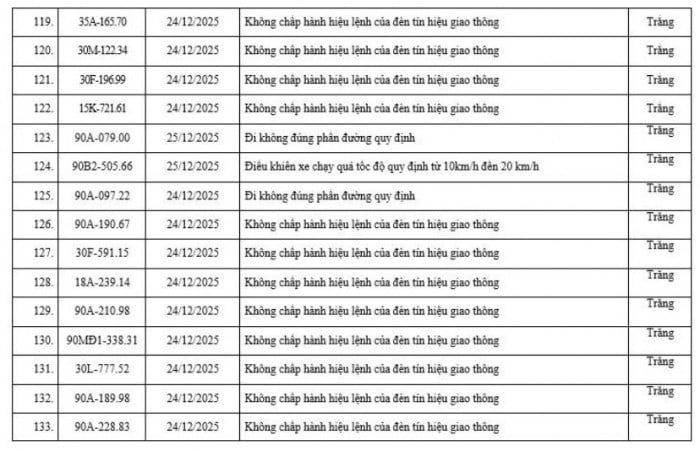 Phòng Cảnh sát giao thông Công an tỉnh Ninh Bình vừa thông báo đã xác định thêm 200 trường hợp phương tiện vi phạm trật tự an toàn giao thông (TTATGT) từ ngày 17/12 đến 31/12/2025 thông qua hệ thống camera giám sát và các thiết bị kỹ thuật nghiệp vụ. Lỗi vi phạm phổ biến nhất là không chấp hành hiệu lệnh đèn tín hiệu giao thông, trong đó nhiều trường hợp bị xử lý với mức phạt lên tới 20 triệu đồng đối với ôtô theo Nghị định 168/2024/NĐ-CP.