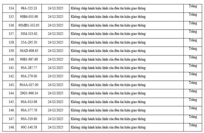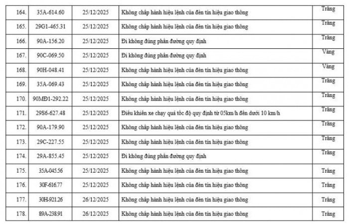10/01/2026 08:27Ninh Bình: Danh sách gần 200 trường hợp vi phạm giao thông phải nộp phạt nguội theo Nghị định 168