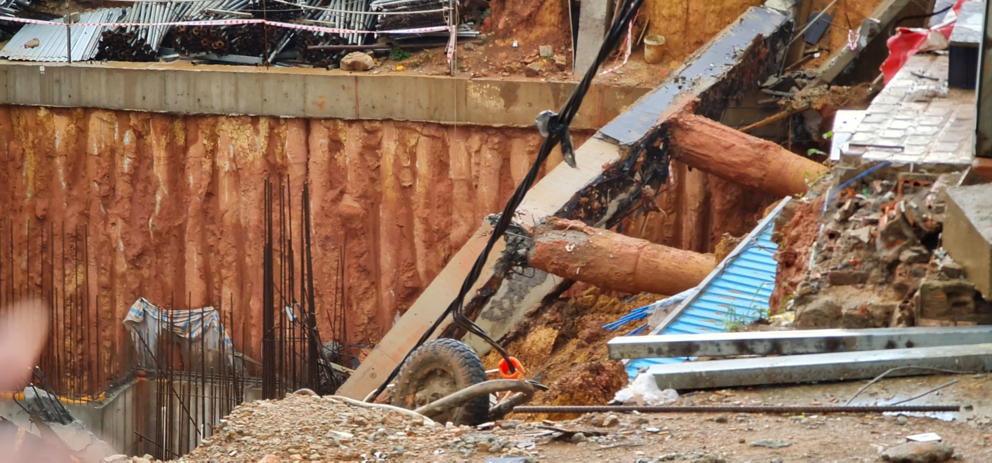 Hậu quả, hàng chục khối đất, đá, các trụ bê tông công trình, một container tại công trường xây dựng bị nước cuốn trôi xuống phía dưới, một trụ điện trung thế bị hư hỏng và nhiều nhà xung quanh bị ảnh hưởng.