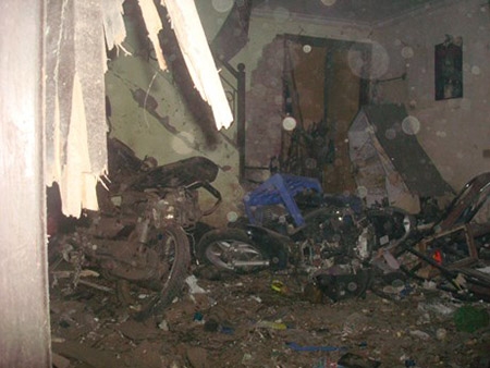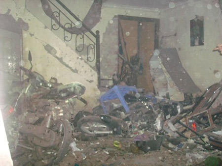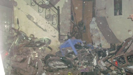 Nạn nhân đi ngang qua chết thảm do ngồi nhà vỡ tung cửa bắn vào người. |