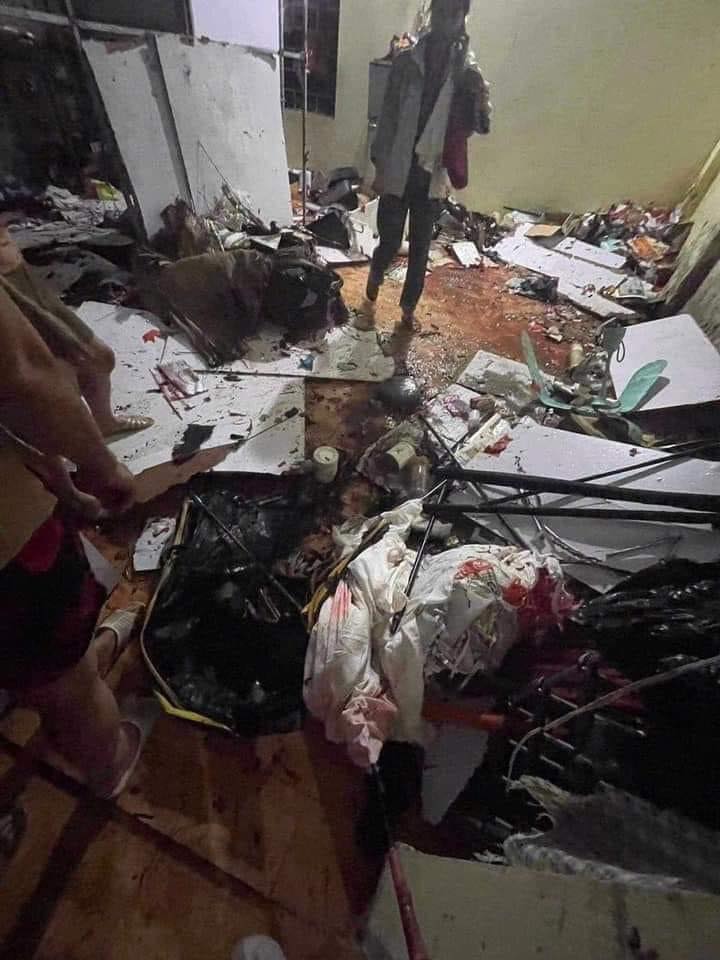 Vụ nổ khiến đồ đạc trong gian nhà hư hỏng toàn bộ, văng tung tóe, mái nhà bay mất một phần, tường nhà loang lổ nhiều vết khói đen, dưới nền có nhiều chỗ lún vỡ.Hình ảnh hiện trường vụ nổ được chia sẻ trên MXH khiến nhiều người kinh hãi.