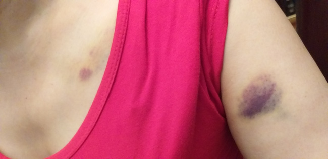 "Tôi và con gái chạy ra can ngăn, ngay lập tức cũng bị gia đình họ xông vào đánh. Con gái tôi bị đạp vào bụng, tôi bị thương tích vùng mắt và khắp cơ thể", bà L. thều thào nói.