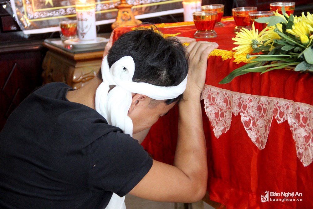 Đến 16 giờ chiều nay, 3 người con của bà Hoa đang làm công nhân tại Đồng Nai mới về đến nơi chịu tang mẹ. Những đứa con khóc ngất ngay từ ngoài cổng khi nhìn thấy linh cữu của mẹ đã được đặt ở giữa nhà.