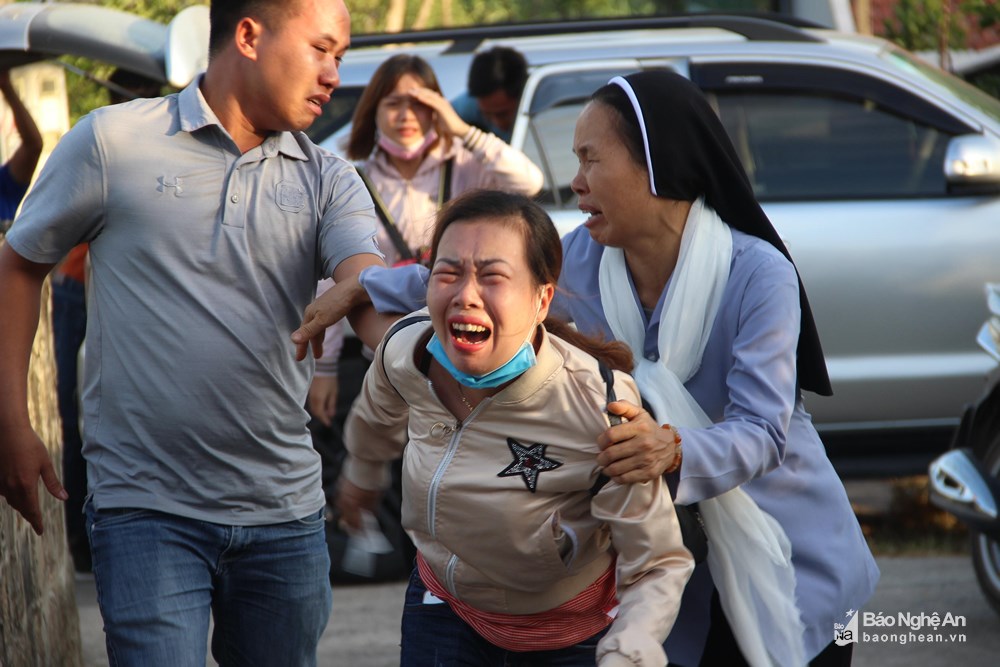 Đám tang bà Hoa được người thân và hàng xóm chung tay dựng vội. Trong ngôi nhà của mình, ông Trần Đình Niệm - chồng bà Hoa đau đớn không nói nên lời, người con trai Trần Đình Kỷ thì liên tục đập đầu vào quan tài, gào lên: "Mẹ ơi, vì con mà mẹ phải chết, con đã bảo mẹ không phải lên dập lửa mà... mẹ ơi...".