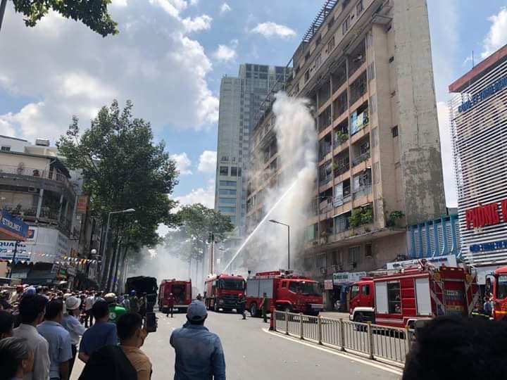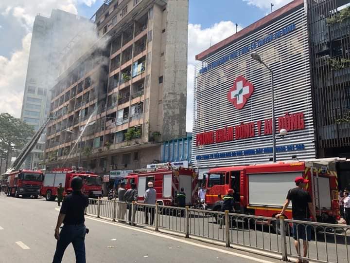 Theo đó, vào thời điểm nói trên, người dân bất ngờ phát hiện ngọn lửa đang bùng cháy, khói bốc lên nghi ngút tại chung cư nằm trên đường Trần Hưng Đạo, quận 5, TP.HCM, ngay sát bệnh viện Chấn thương Chỉnh hình.