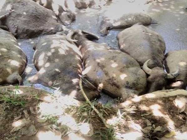 Cụ thể, khoảng 9 giờ sáng 8/7, khi lên thăm trâu thì người dân phát hiện 14 con trâu nằm chết la liệt trong vũng đầm trên núi đã thông báo cho các hộ còn lại.
