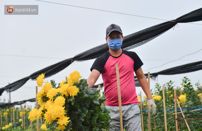 Anh Tuấn, người dân trồng hoa cho biết, trong làng nhiều người trồng hoa cúc lỗ nặng do Covid-19 bùng phát. "Một sào hoa cúc bỏ vốn mất vài chục triệu, thời điểm này cùng lắm thu về được vốn. Giá rẻ nhiều nhà không buồn thu hoạch, để hoa héo ngoài đồng", anh Tuấn nói.