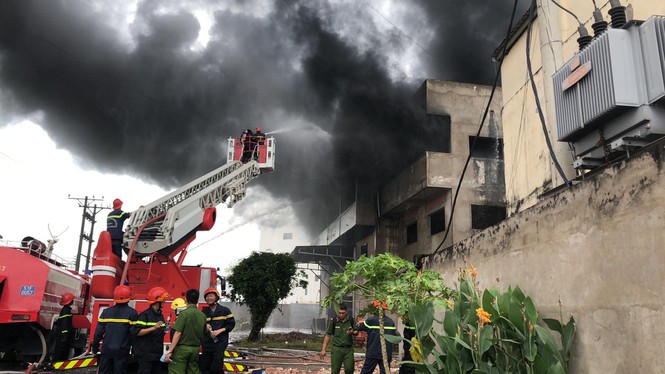 Nhận tin báo, lực lượng Cảnh sát PCCC TPHCM điều động hàng chục xe nước cùng hàng trăm cán bộ, chiến sĩ đến hiện trường triển khai phương án dập lửa. Các nhà xưởng lân cận cũng ngưng hoạt động, di dời tài sản để đảm bảo an toàn.