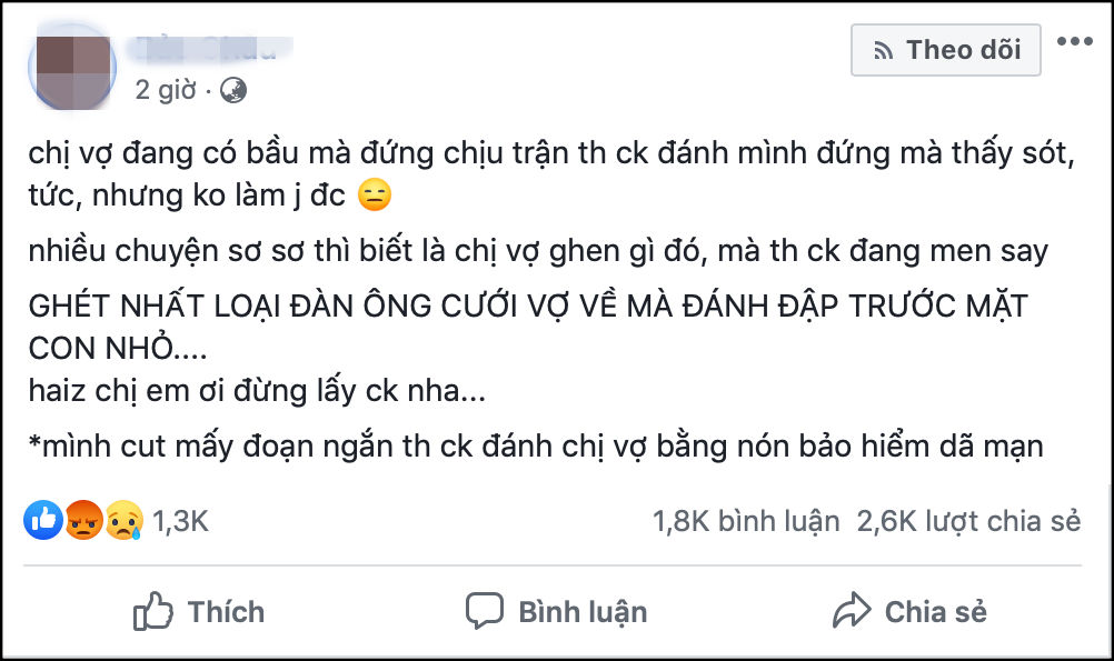 Chỉ sau ít giờ đăng tải, sự việc trên đã nhận về hàng ngàn tương tác, bình luận và chia sẻ của cộng đồng mạng. Dù chưa rõ nguyên nhân sự việc nhưng tất cả đều kịch liệt phản đối, lên án gay gắt hành vi bạo hành của người chồng, cho rằng việc anh đánh đập người vợ đang mang thai, lại còn trước mặt 2 con nhỏ là không thể chấp nhận được.