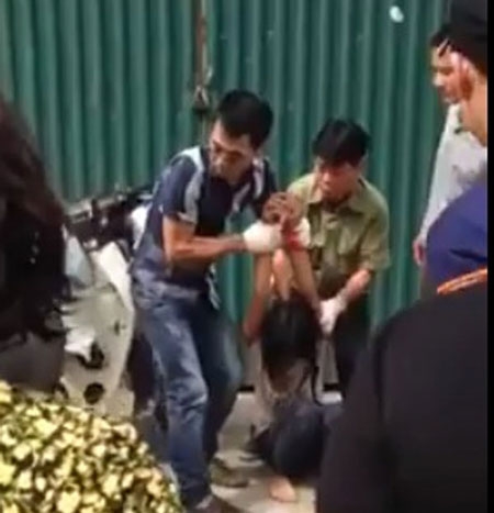 Một cô gái khoảng 20 tuổi có biểu hiện không bình thường, tay cầm kim tiêm được cho là đã đâm nhiều người. Không lâu sau đó, "nữ quái" này đã bị lực lượng dân phòng khu vực khống chế.