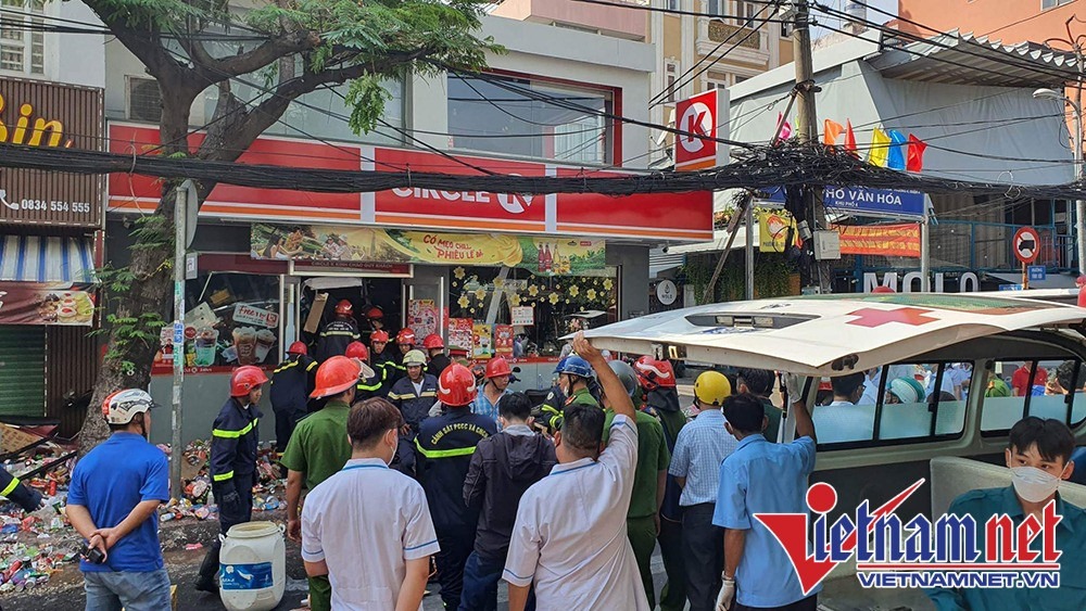 Có mặt tại hiện trường, Thiếu tá Huỳnh Nguyên Thuận - Phó Đội trưởng Đội công tác CC-CNCH, Phòng Cảnh sát PCCC&CNCH cho hay, đơn vị nhận được thông tin lúc 9h sáng nay về việc cửa hàng tiện lợi Circle K trên đường Vĩnh Hội, phường 4, quận 4 bị sập.