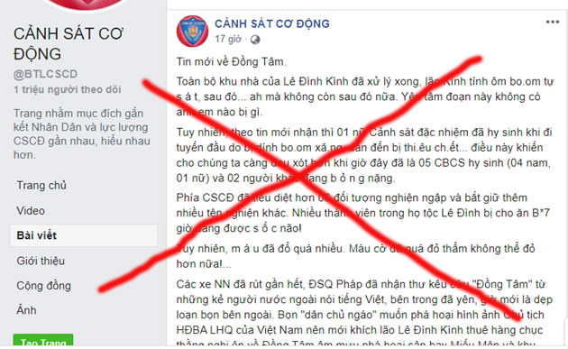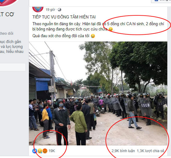 11/01/2020 03:12(NÓNG) Thông tin 5 cán bộ chiến sĩ Công an hy sinh ở Đồng Tâm là bịa đặt