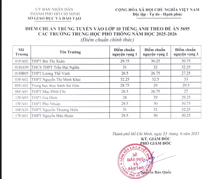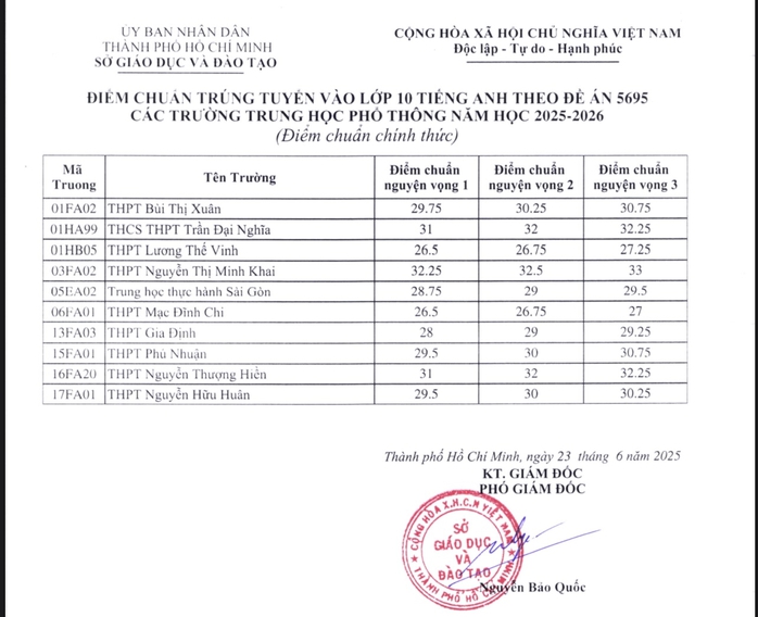 23/06/2025 19:00NÓNG: TP HCM công bố điểm chuẩn lớp 10 chuyên, lớp 10 tích hợp