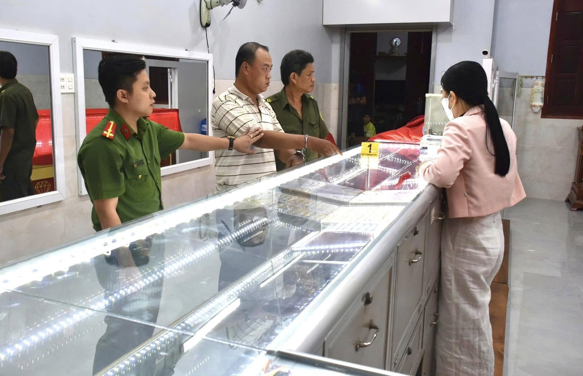“Hắn dựng xe ở góc phải tiệm, đi vào và đề nghị được đeo thử lắc, nhẫn đã xem trước đó, rồi liên tục móc điện thoại ra nói chuyện. Thấy biểu hiện khả nghi, tôi chồm đến lấy lại số trang sức này thì hắn bỏ chạy ra xe.