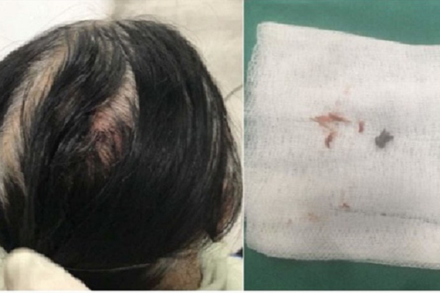 Do sự việc xảy ra quá nhanh nên không thể xác định vật gì rơi trúng đầu, khi đến bệnh viện các bác sĩ phát ra viên đạn súng hơi.