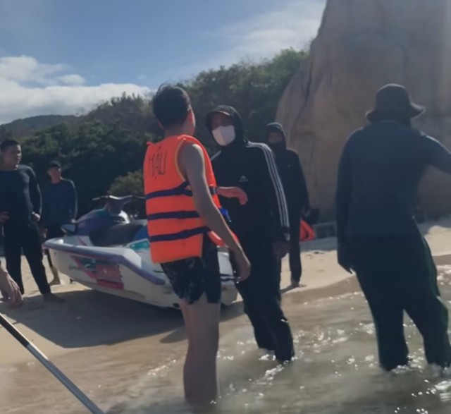 Cũng theo nữ du khách này, nhóm người lái mô tô nước sau đó chạy ra biển để vớt sup về, bỏ mặc các bạn của chị L. tự bơi vào bờ. Do vậy, nhóm chị L. và một người trong đội mô tô nước xảy ra tranh cãi. Một thành viên đánh chị L. khi bị ghi hình bằng điện thoại.