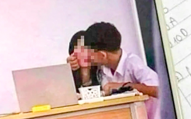 Trước đó, như Báo Người Lao Động đã thông tin, những ngày gần đây mạng xã hội xôn xao với clip một nam sinh cùng một cô gái ngồi tại bàn ghế của giáo viên có những cử chỉ thân mật. Trong đoạn clip, nam sinh đã dùng tay khoác vai cô gái, hai má kề vào nhau, trò chuyện. Đáng chú ý, thời điểm này có rất nhiều học sinh ngồi phía dưới chứng kiến cảnh nêu trên.
