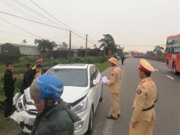 Thời điểm đó, ôtô con mang biển số Hà Tĩnh (chưa rõ danh tính tài xế), khi lưu thông trên quốc lộ 1, hướng từ Nam ra Bắc đã va chạm với xe máy mang biển số Hà Tĩnh đi cùng chiều.