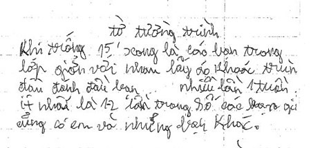 | Đơn tường trình sự việc của một trong các học sinh tham gia đánh bạn. |
