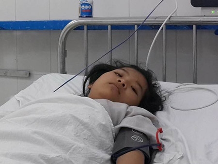 Hà Thị Hải Hậu nằm điều trị tại bệnh viện. Ảnh: N.A. |