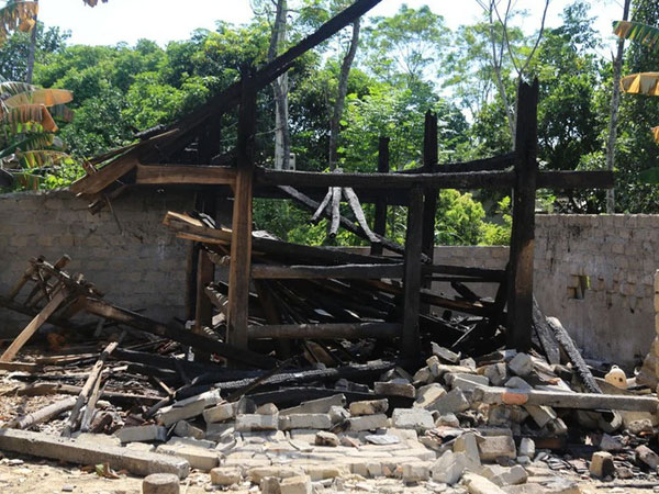 Bà Hoa nói thêm, đây là lần đầu nhà ở của dân trong xã bị đốt vào ban ngày, trước đó chỉ bị đốt nhà chứa rơm vào ban đêm. Bà Hoa ở một mình và nhà bị phóng hỏa khi bà đi vắng. Nhà bị cháy nên bà Hoa phải ra chuồng bò ngủ.