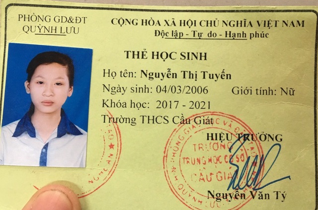 Được biết cháu T. hiện là học sinh lớp 9, Trường THCS Cầu Giát, huyện Quỳnh Lưu, Nghệ An.