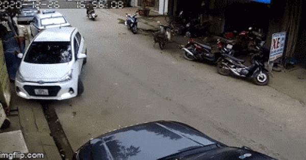 Theo đó vào khoảng 17h chiều ngày hôm qua (26/12), một người phụ nữ bước vào ô tô màu trắng đang đỗ sát lề đường, khởi động xe để rời đi. Tuy nhiên quá trình lùi xe ra ngoài không được như mong muốn, trong một khoảnh khắc bất cẩn nhầm chân ga với chân phanh, chị đã khiến ô tô lùi nhanh như tên bắn, đâm ô tô khác phía sau rồi lao vào nhà dân đâm loạt xe máy dừng đỗ trước cửa.