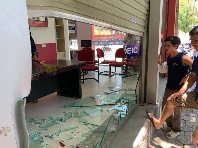 Tại hiện trường, 3 chiếc xe máy bị đè nằm gọn dưới gầm xe ô tô. Phần kính của trung tâm anh ngữ vỡ nát. May mắn vụ tai nạn đã không gây thiệt hại về người.