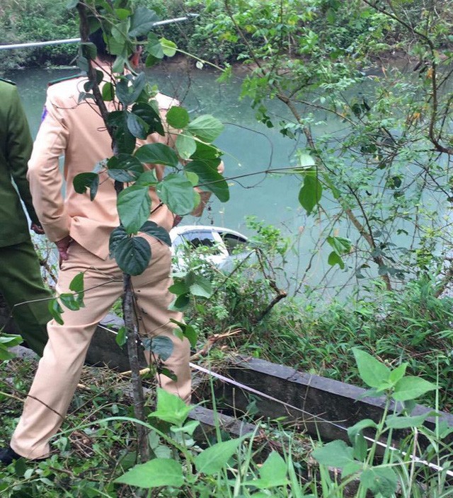 Tại hiện trường chiếc xe lật ngửa, chìm sâu dưới nước. Sau khi phát hiện sự việc, người dân địa phương đã trình báo cơ quan chức năng.