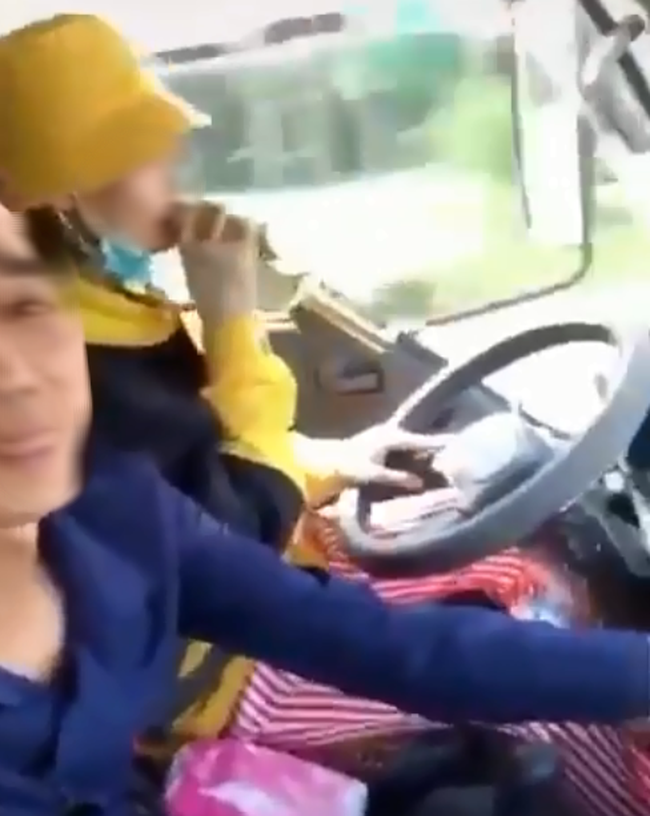 Những tưởng việc điều khiển xe có trọng tải lớn công việc yêu cầu sự tập trung cao độ để có thể kịp thời xử lý bất kỳ trường hợp bất ngờ nào xảy ra, ấy vậy nhưng cô gái trẻ này khá tự tin với tay lái của mình đến mức có thể 1 lúc làm cả 2 việc như thế này.