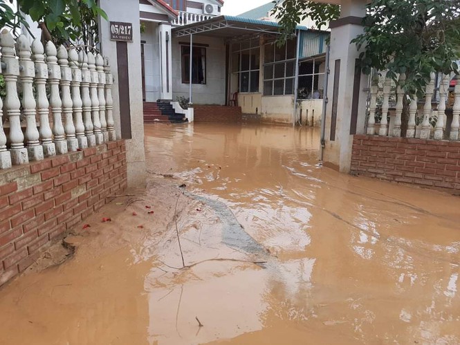 Anh Nguyễn Văn Hiếu (phường 3, TP Đông Hà) cho hay cả nhà anh đã tranh thủ đẩy bùn ra ngoài cùng lúc nước rút, nhưng không thể nào đẩy hết. Trên tường và các vật dụng bùn vẫn còn bám dày, khoảnh sân trước nhà anh bùn non cao ngập mắt cá chân.