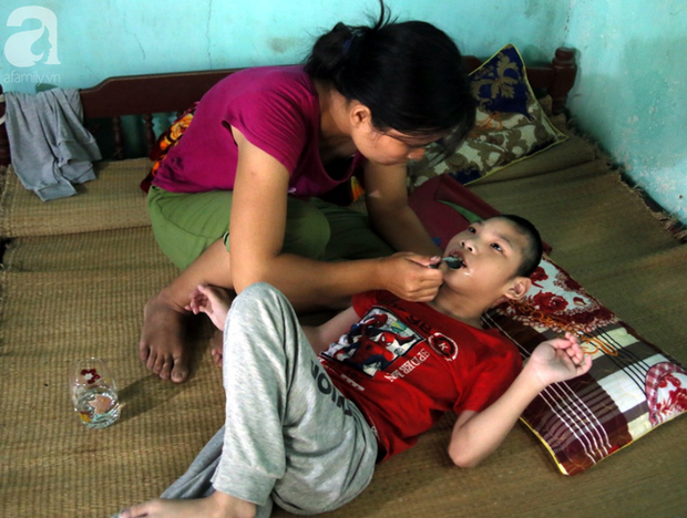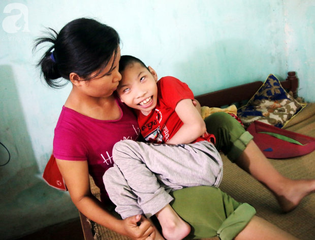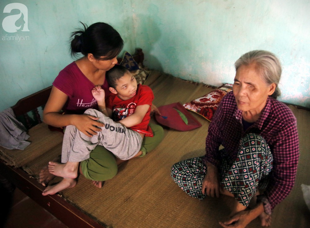 2 mẹ con trở về quê trong căn nhà cấp 4 rách nát và dìu nhau sống lay lắt từng ngày với mấy con gà, 2 sào ruộng cùng tiền trợ cấp tàn tật và nuôi người tàn tật vỏn vẹn chưa đầy 1,5 triệu đồng/tháng.