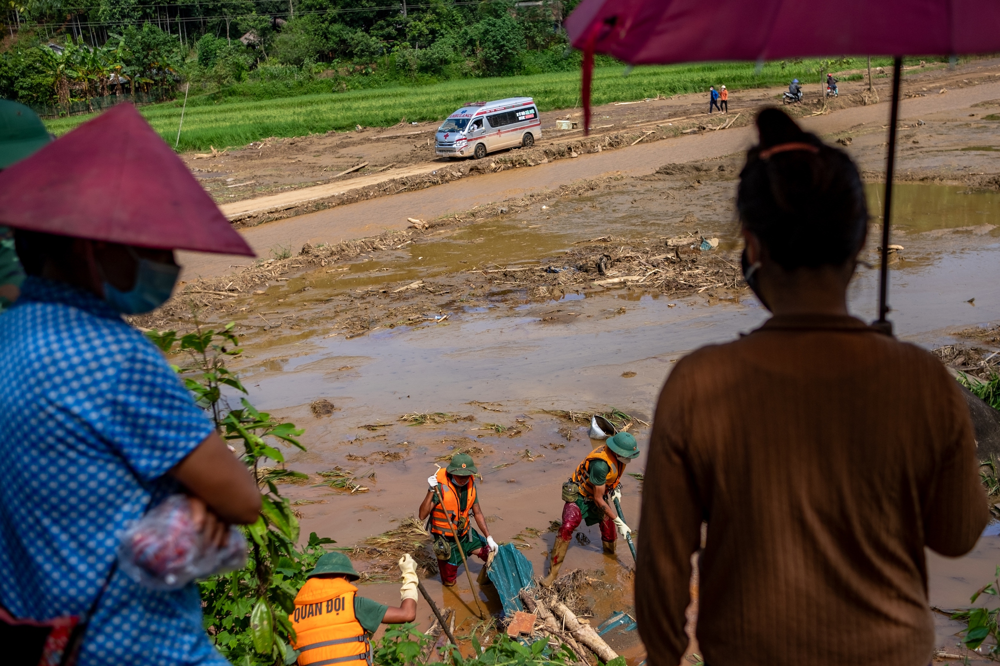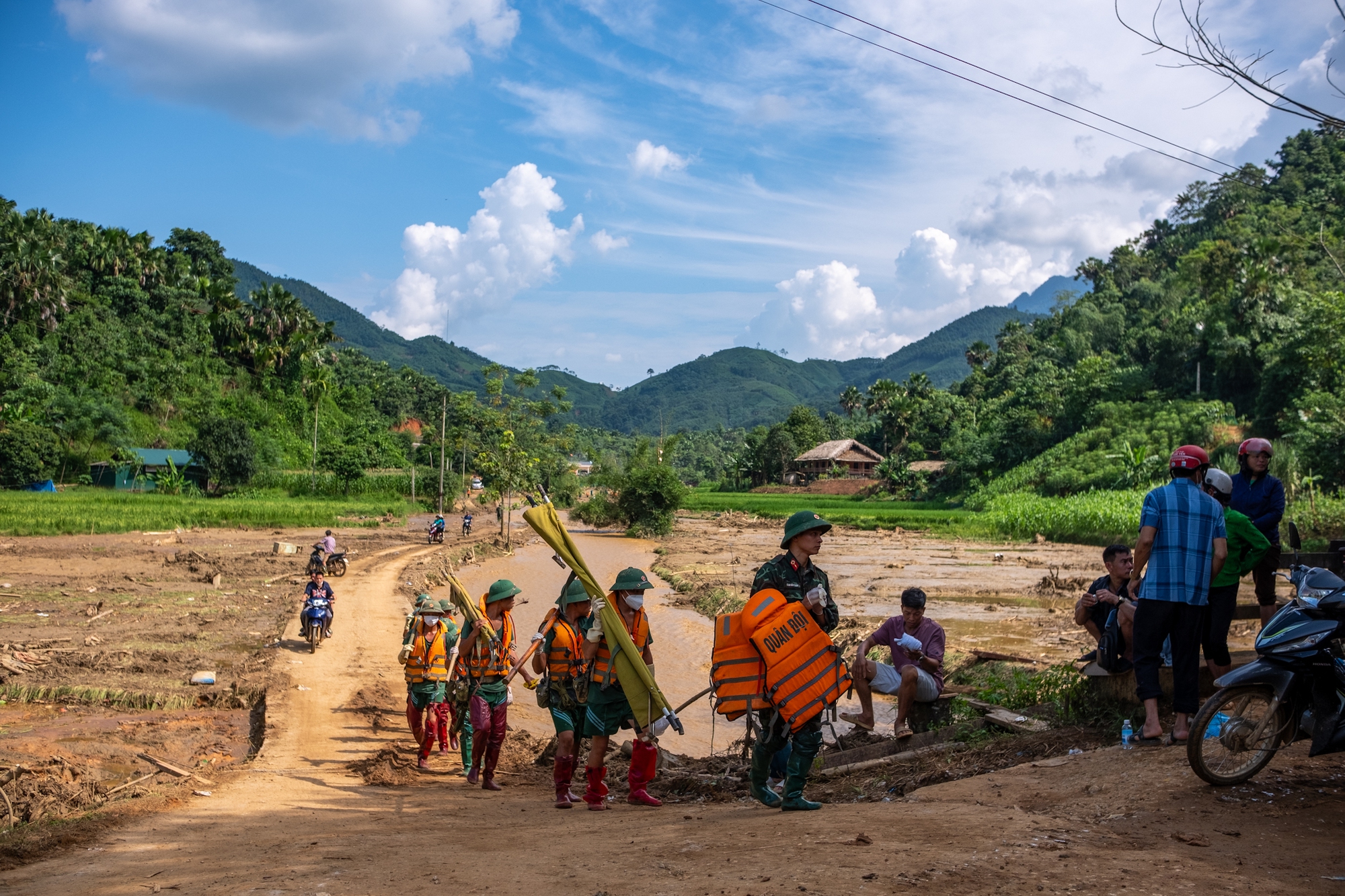 Chiều 13/9, khi đang diễn ra công tác tìm kiếm các nạn nhân còn mất tích thì nước từ thượng nguồn bất ngờ đổ về Làng Nủ khiến lực lượng cứu hộ phải rút về để bảo đảm an toàn.