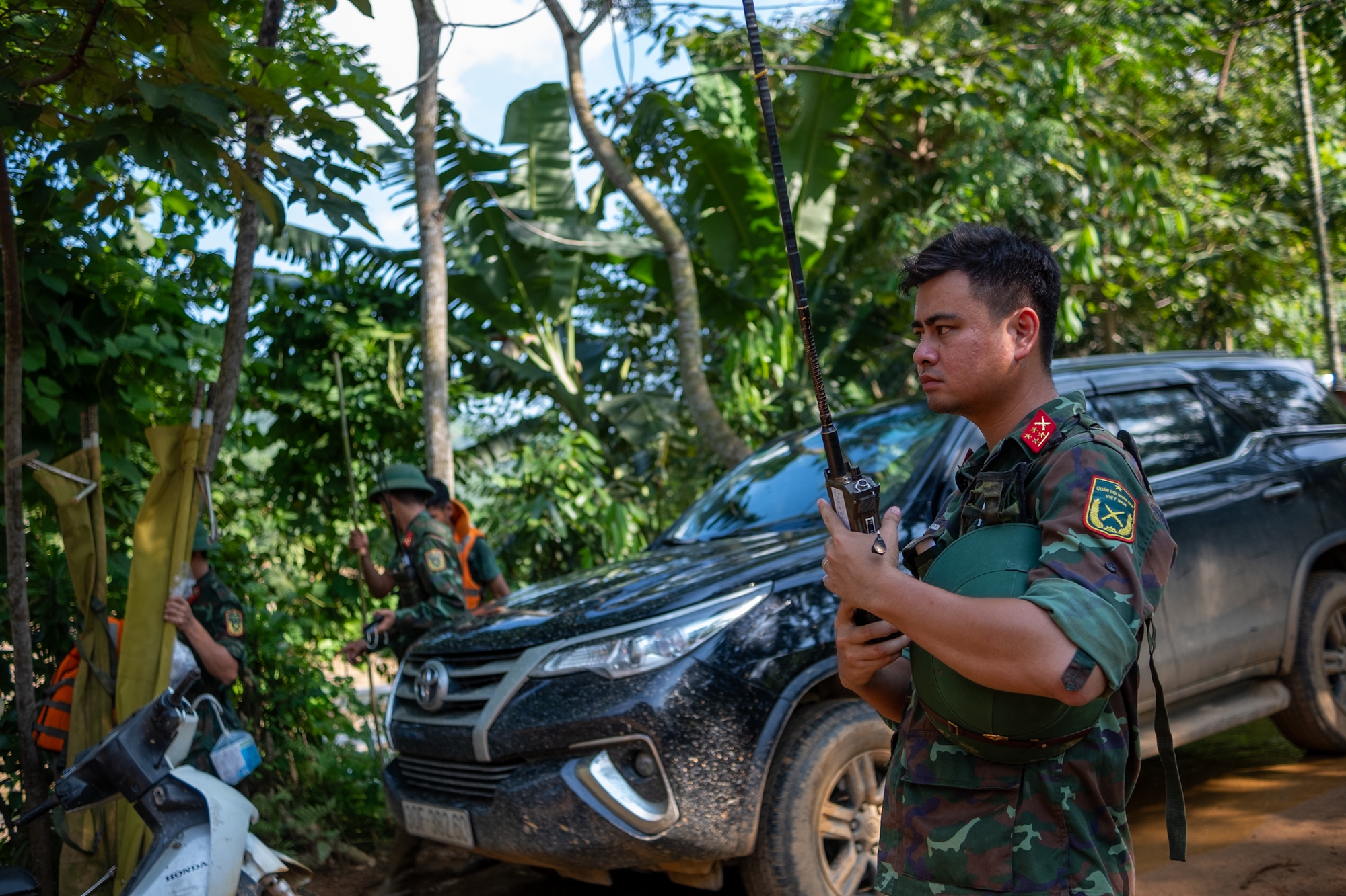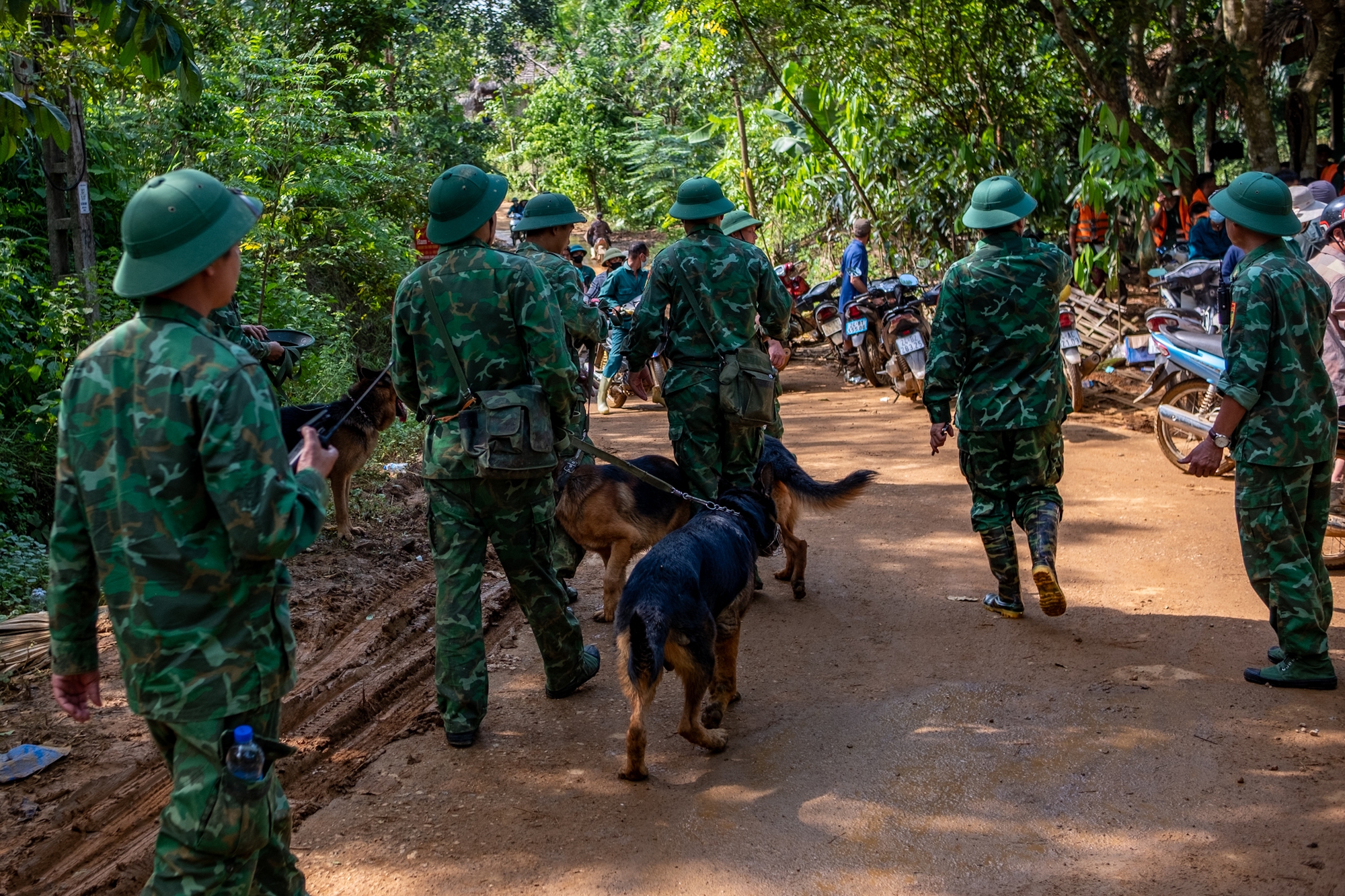 Ngay sau khi ban chỉ huy cứu hộ đã phát hiệu lệnh cảnh báo, toàn bộ chiến sĩ đang làm công tác tìm kiếm nạn nhân mất tích khẩn cấp di chuyển đến nơi có vị trí cao.