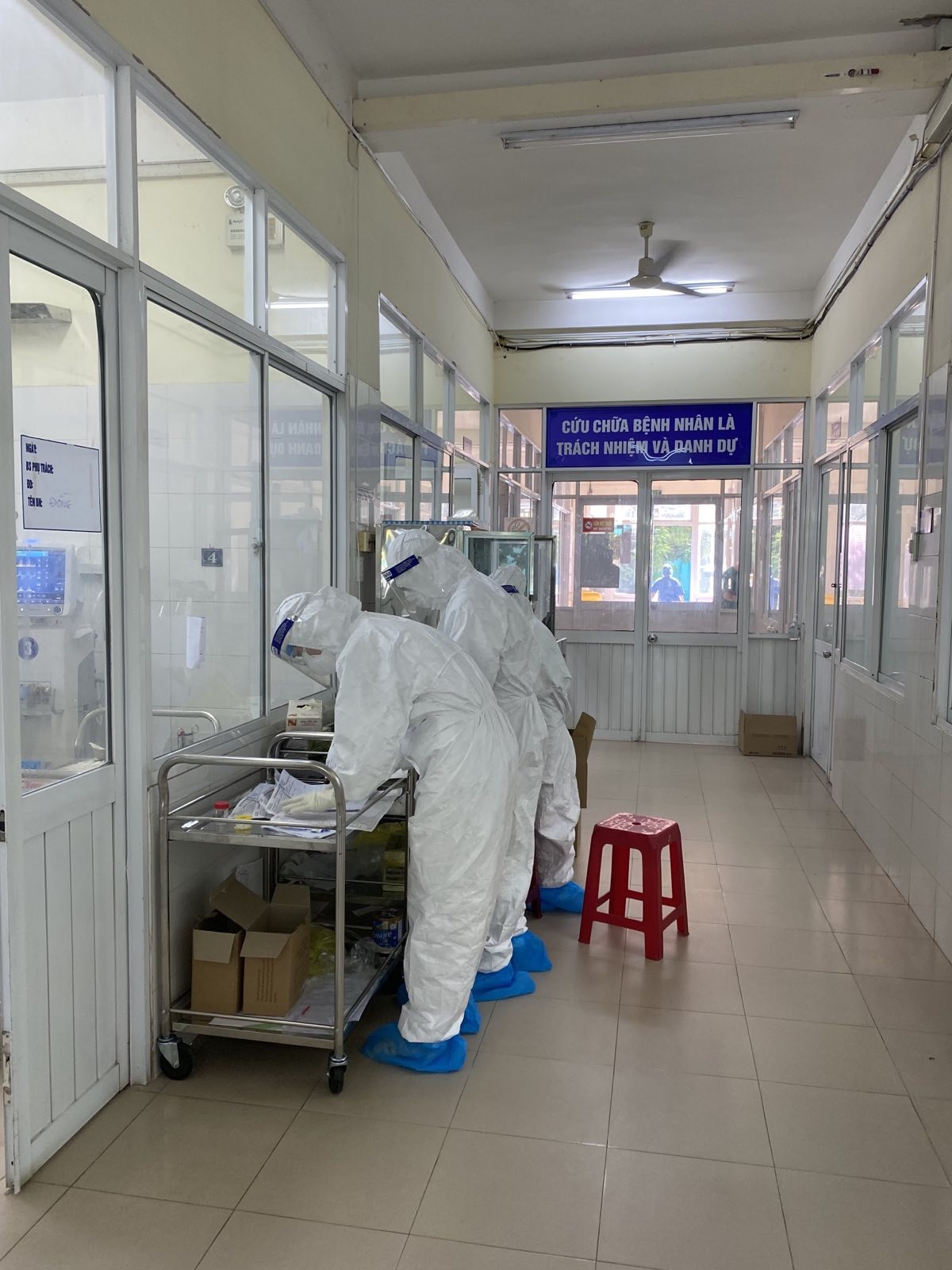 Bác sĩ chuyên khoa 2 Lê Kinh Luân, khoa Thận nhân tạo bệnh viện Chợ Rẫy, trưởng ê kíp phản ứng nhanh của bệnh viện Chợ Rẫy tại bệnh viện Hòa Vang cho biết, ekip đang phối hợp cùng các đồng nghiệp phụ trách chăm sóc cho 9 bệnh nhân và dự kiến đầu tuần số lượng bệnh nhân sẽ tăng lên 16. Mỗi ngày từ 2-3 lần, ê kíp phản ứng nhanh cùng các đồng nghiệp mặc trang phục cách ly vào chăm sóc cho các bệnh bệnh nhân. Do bệnh nhân chạy thận nhân tạo thường có sức đề kháng yếu, nay kết hợp nhiễm Covid-19 nên không ít bệnh nhân ở tình trạng nặng. Tuy nhiên, mọi người đều đang nỗ lực hết sức để có thể cải thiện được tình trạng sức khỏe cho các bệnh nhân này.