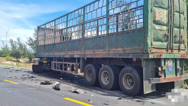 Tại hiện trường, theo ghi nhận của báo Tiền Phong, phần đầu phía trái (bên lái) của xe 7 chỗ bị biến dạng hoàn toàn, xe đầu kéo cũng bị hư hỏng, mảnh vỡ tung tóe khắp nơi