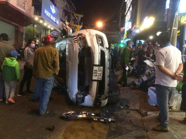 Xe trôi dốc và tông vào đuôi một ô tô 4 chỗ mang biển kiểm soát 49A-187... đang đậu bên đường, rồi tiếp tục đâm 7 xe máy dựng trên vỉa hè trước khi lật nghiêng trên đường. Tại hiện trường, ô tô 7 chỗ bị hư hỏng nặng, ô tô 4 chỗ bị hỏng phần đuôi, nhiều xe máy bị ngã, hư hỏng. Điều may mắn ôtô 49A-324.97 trôi tự do khoảng 150 m nhưng không gây tai nạn cho người đi đường