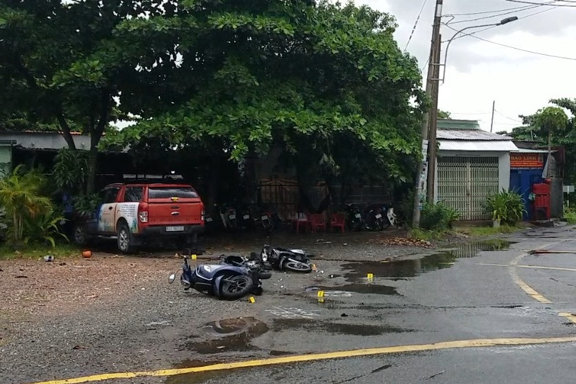 Tại hiện trường, ô tô bán tải lao qua làn đường hướng ngược lại, rồi lao tiếp vào nhà dân bên đường. Hai xe máy nằm giữa đường, nhiều bộ phận bị hư hỏng, văng tung tóe.