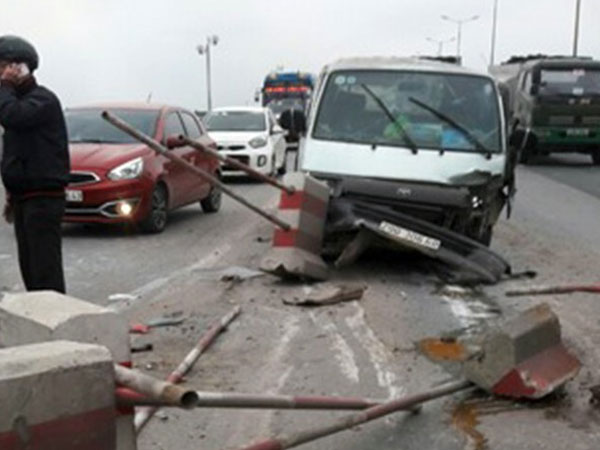 Theo thông tin ban đầu, khoảng 7h15 ngày 17/12, chiếc xe ô tô 16 chỗ lưu thông đến cột đèn 41 trên cầu Thanh Trì hướng đi QL5 bất ngờ đâm vào dải phân cách giữa làn hỗn hợp xe máy, ô tô và ô tô.
