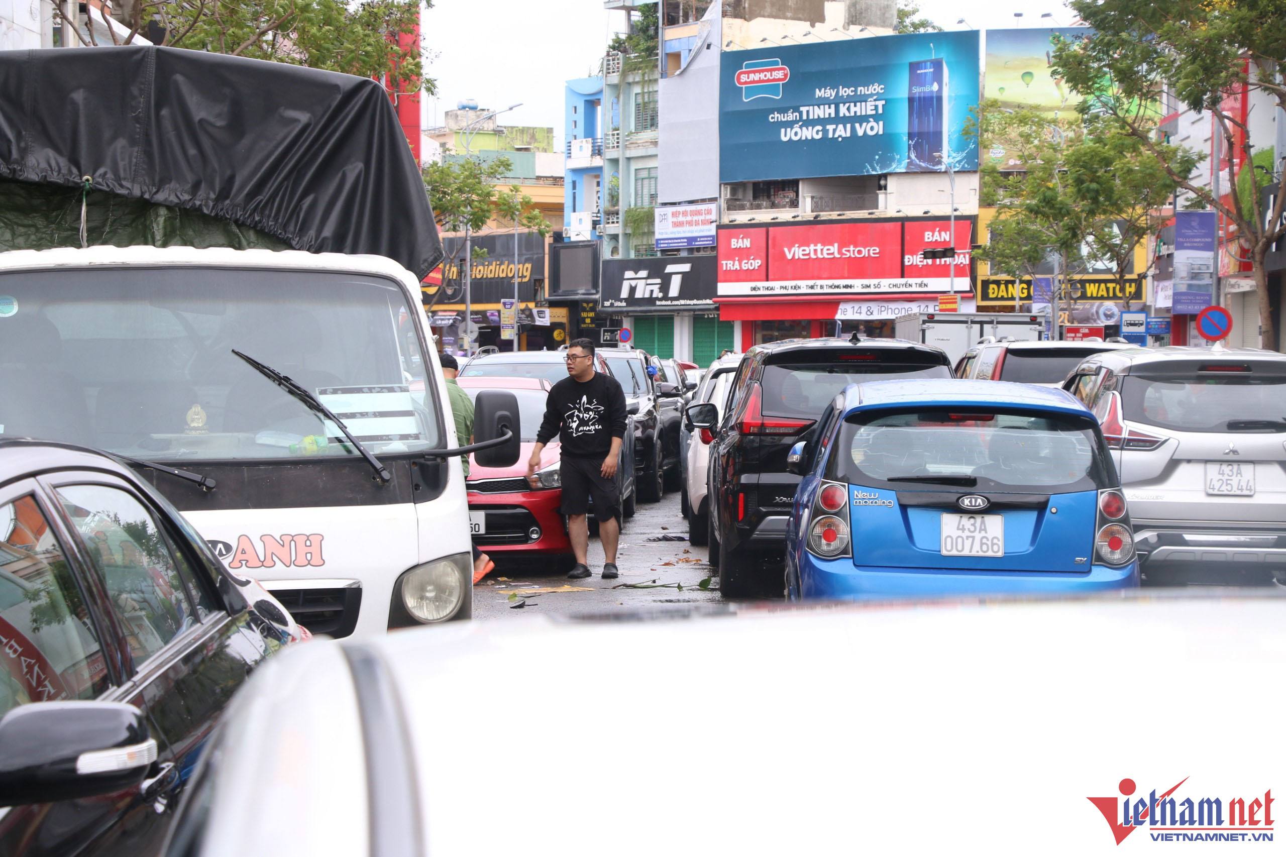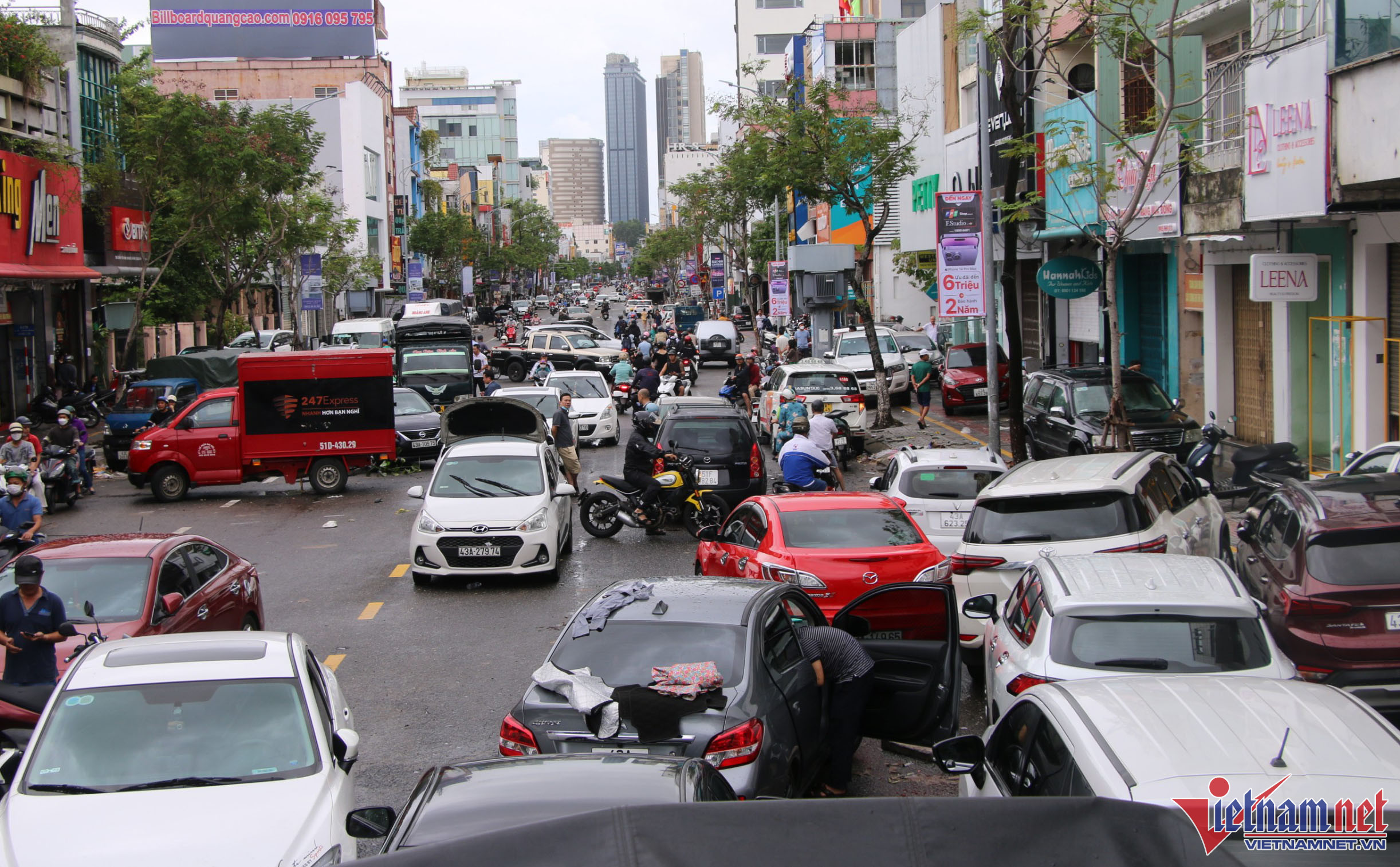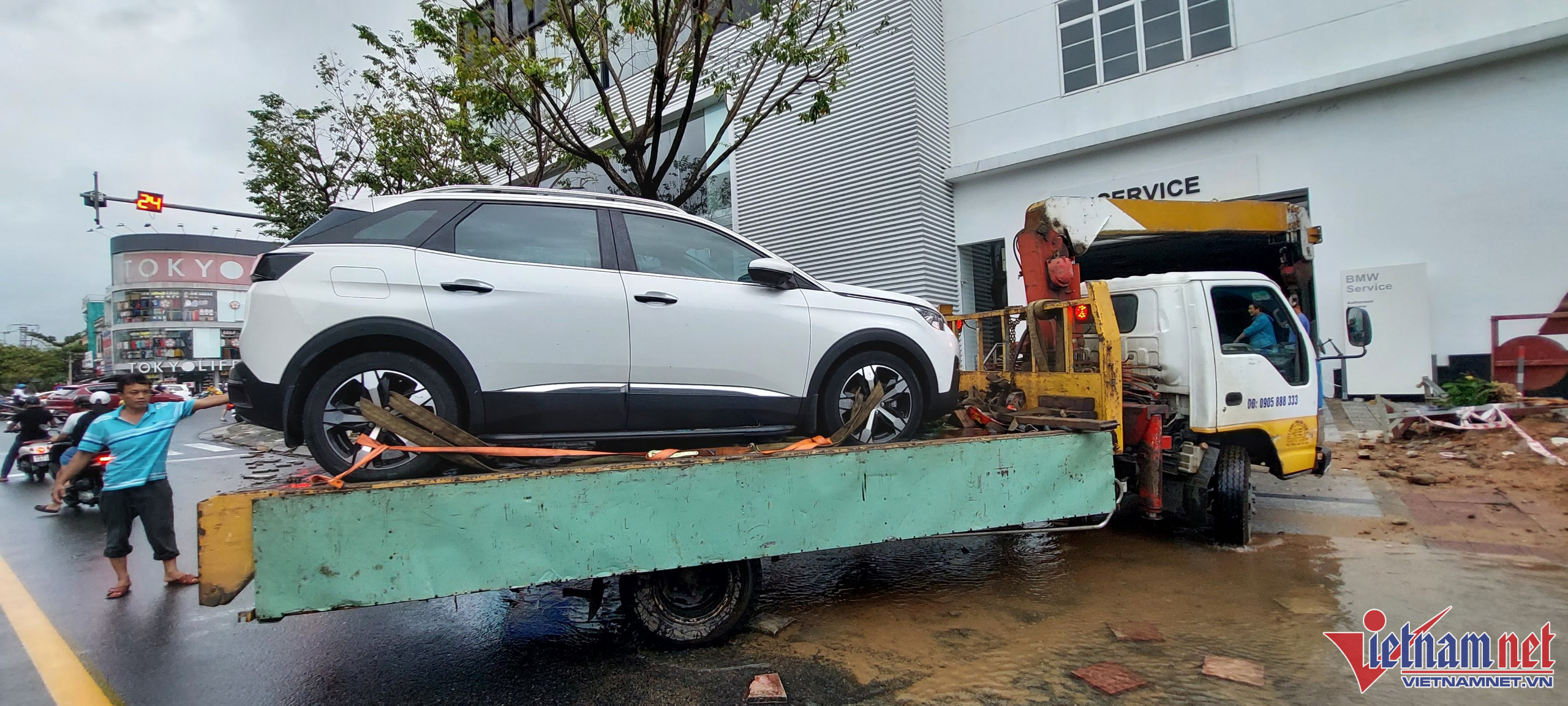 Hàng trăm ô tô chết máy nằm la liệt trên đường phố ở Đà Nẵng sau lũ, xe cứu hộ liên tục được huy động để đưa ô tô đến gara.